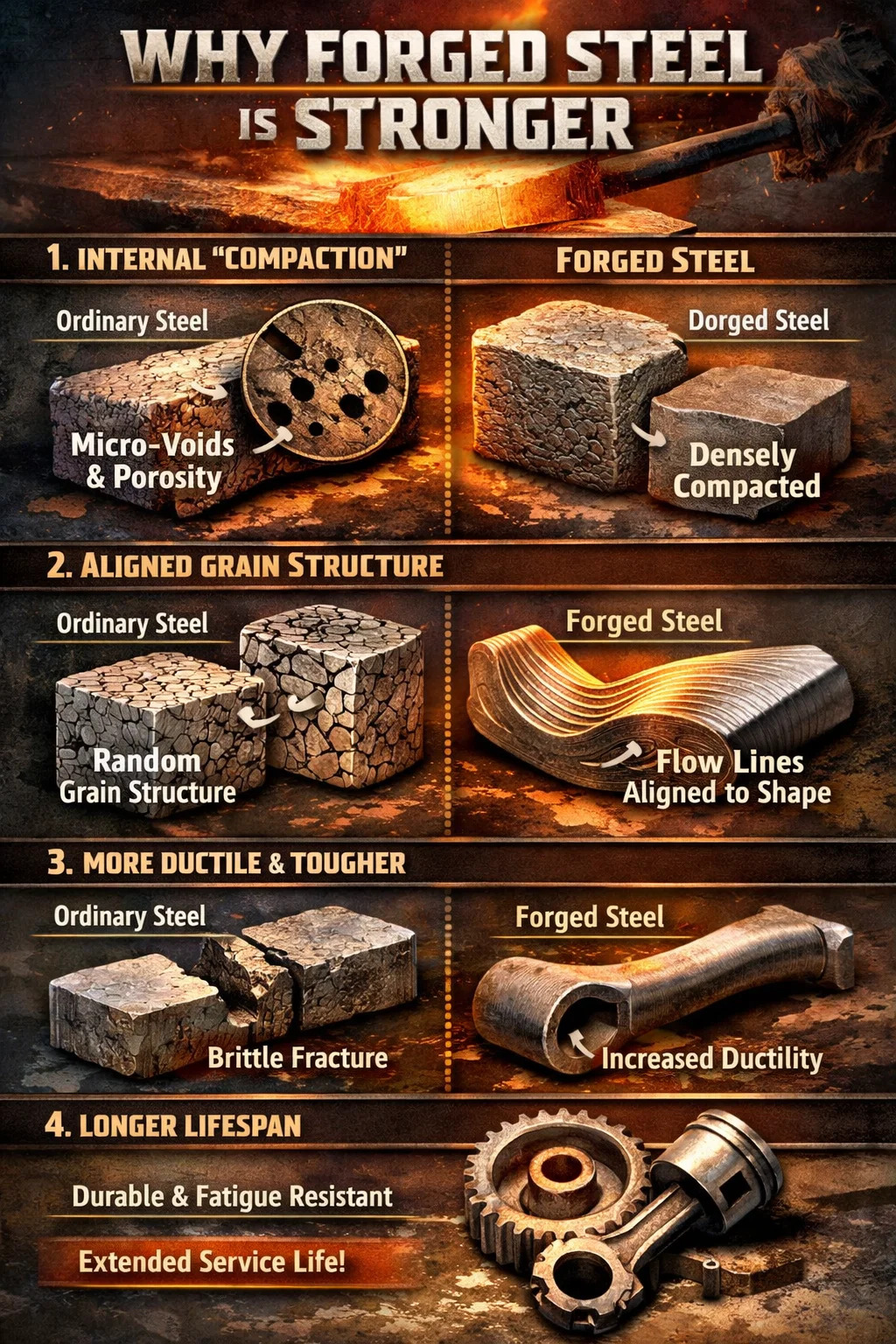 Cruach brionnaithe: Faoi bhrú ollmhór, tá na pores beaga seo leacaithe go hiomlán agus táthaithe le chéile, rud a fhágann go bhfuil an píosa iomlán miotail chomh dlúth le bloc soladach. Gan lochtanna inmheánacha, tá an chuid nádúrtha níos láidre.