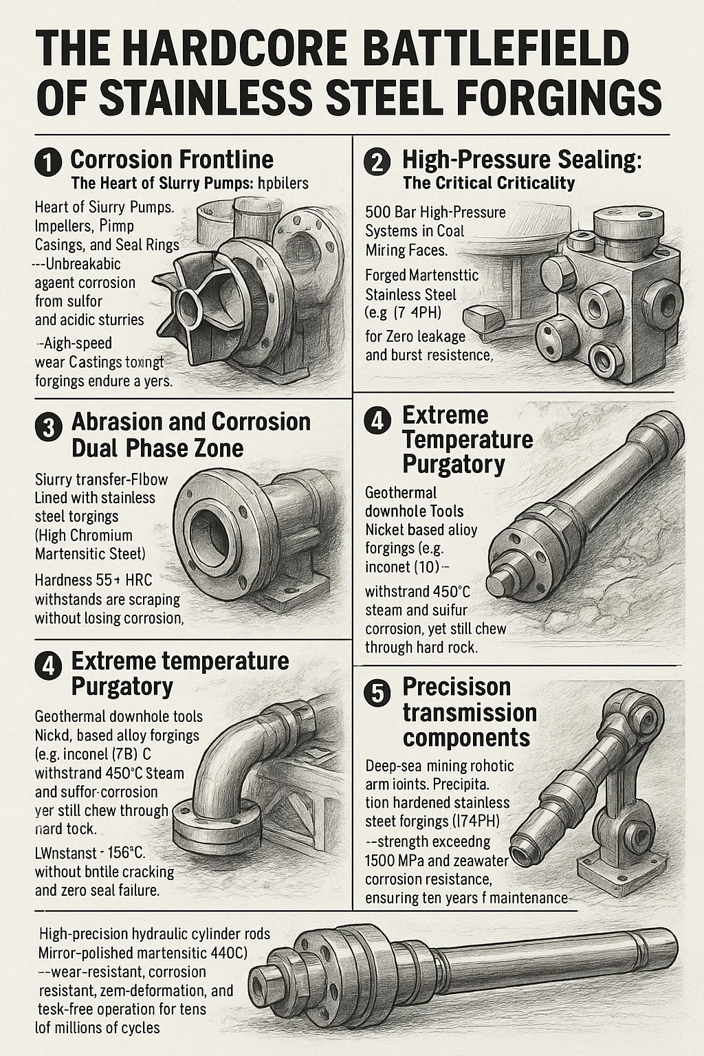 Uirlisí Downholl Geoiteirmeach: Forgings Alloy Bunaithe ar Nicil (m.sh., Inconel 718)-Seas le gaile 450 ° C agus creimeadh sulfair, ach fós ag caoineadh trí charraig chrua.