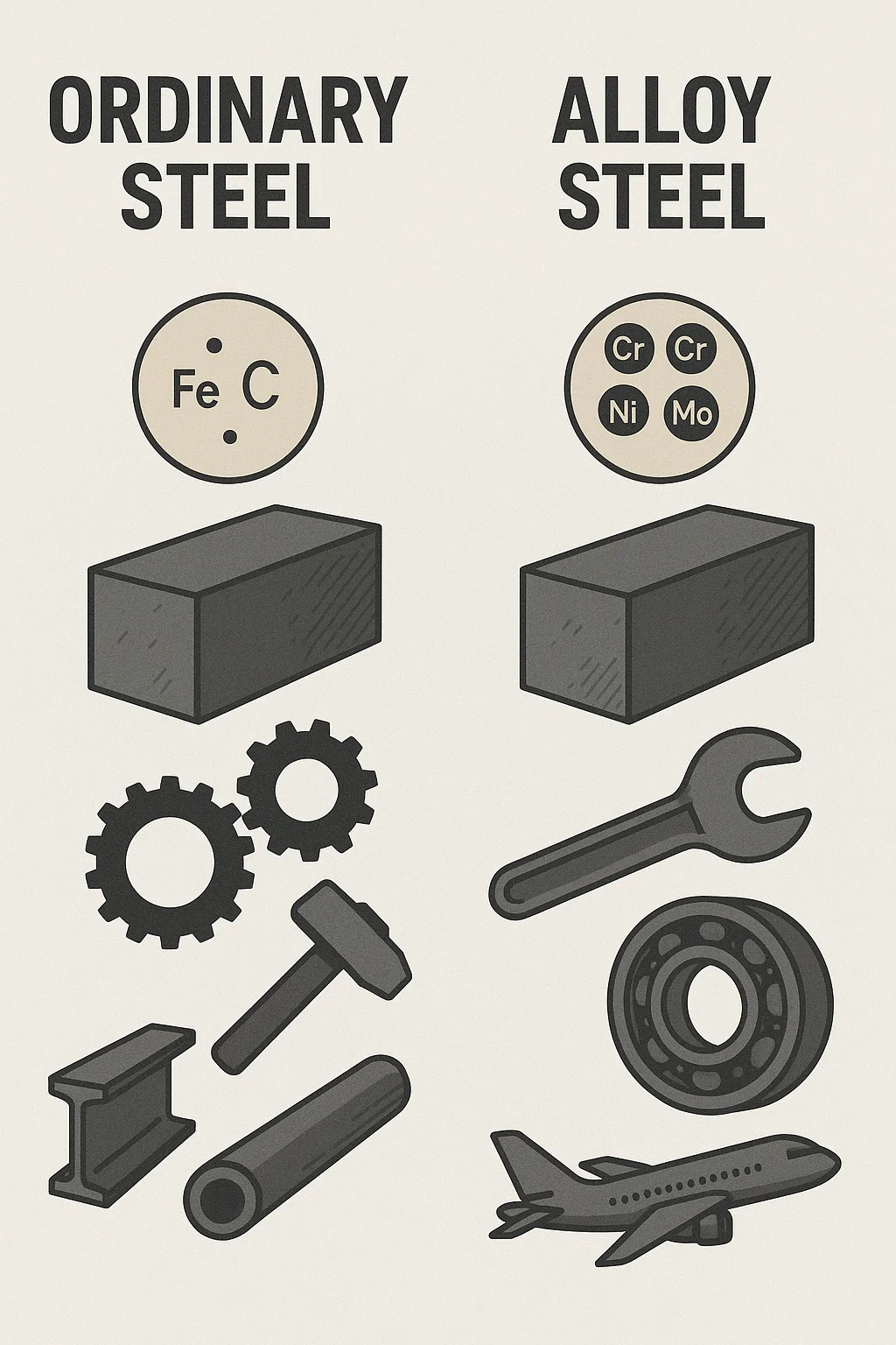 | Comhdhéanamh Bunscoile | Iarann Carbóin (le rian eisíontais íosta) | Iarann Carbóin Eilimintí cóimhiotalaithe breise suntasacha (m.sh., Cróimiam, Nicil, moluibdín) |